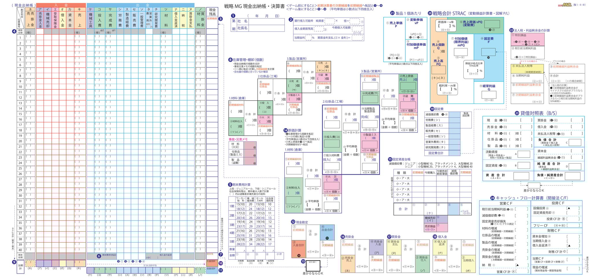 戦略MGマネジメントゲームで経営活動1期分を行ったあと、毎期決算を行い、分析→評価→次期計画を行います。